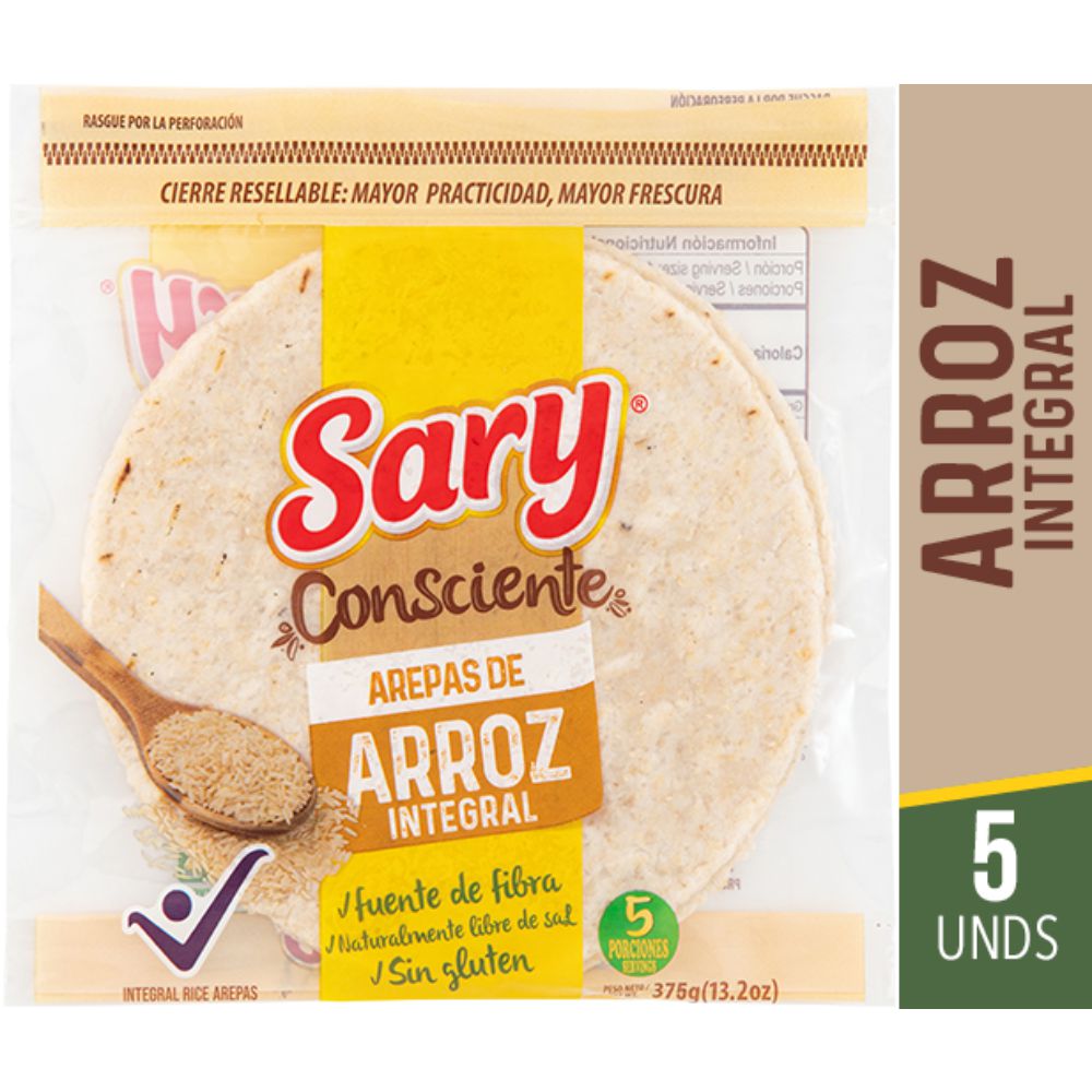 Arepas integrales SARY CONSCIENTE de arroz integral x5und (375 gr)