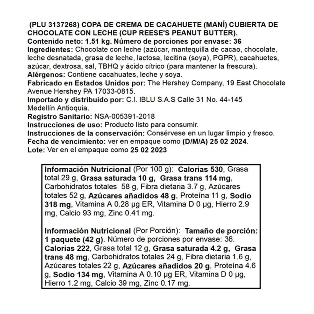 Chocolates HERSHEYS con mantequilla de maní (1512 gr)