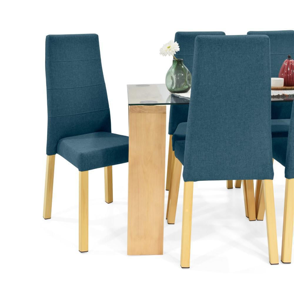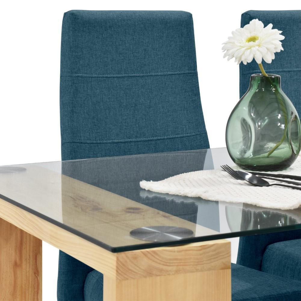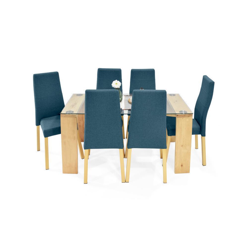 Comedor 6 Puestos Milan Matiz Con Sillas Cairo Azul Tela