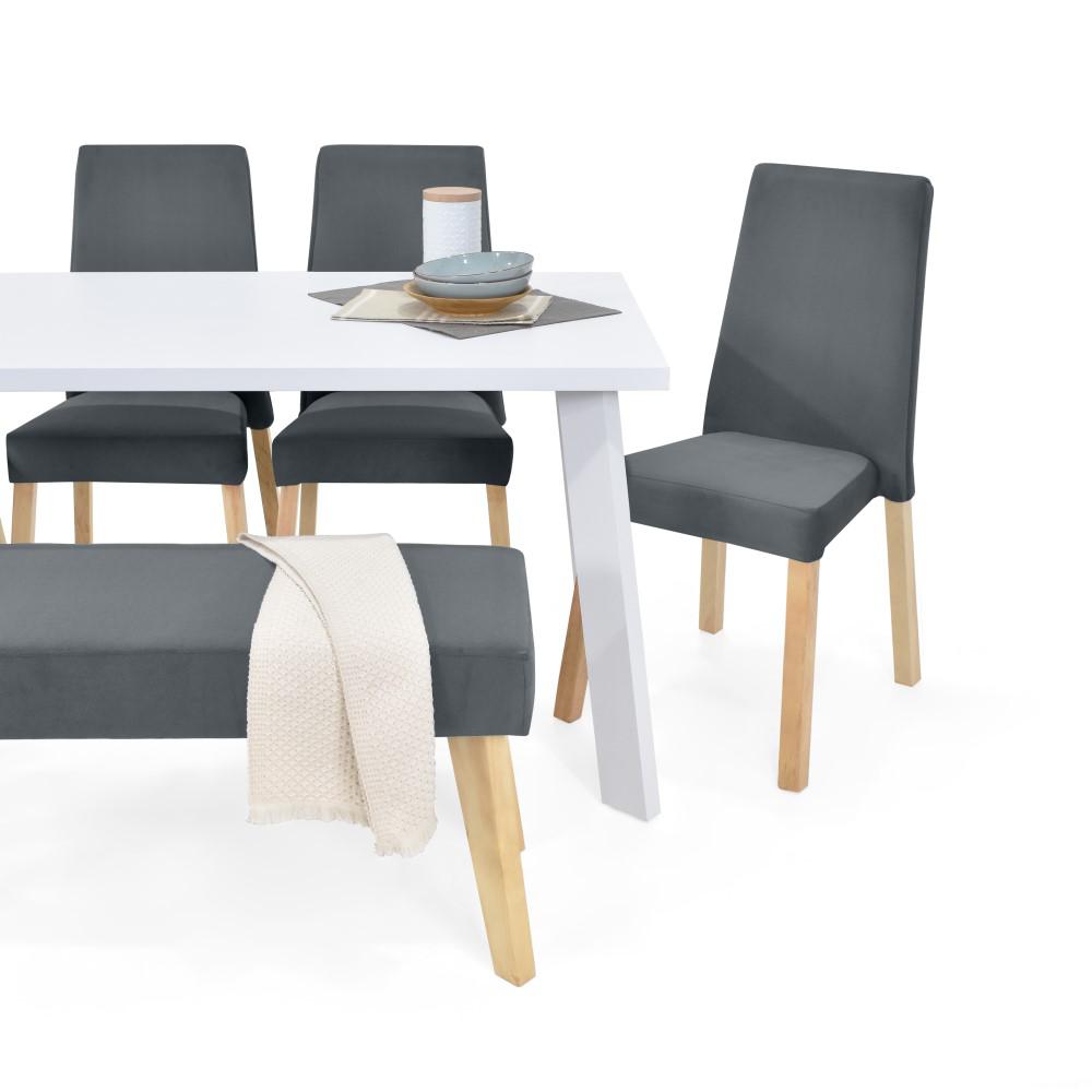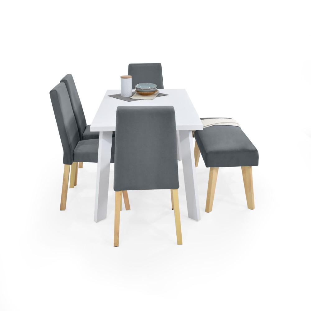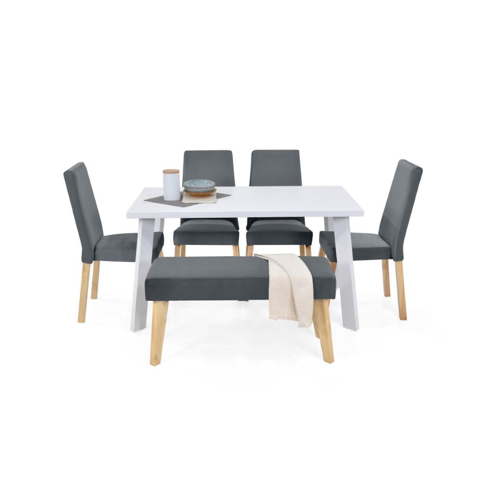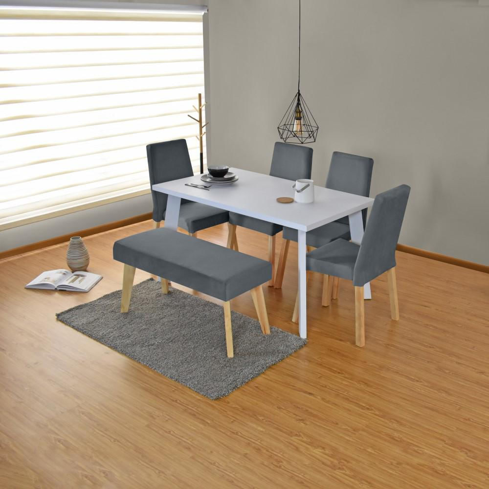 Comedor Lugo 6 Puestos Sillas Galicia Y Butaco Viena Tela Gris