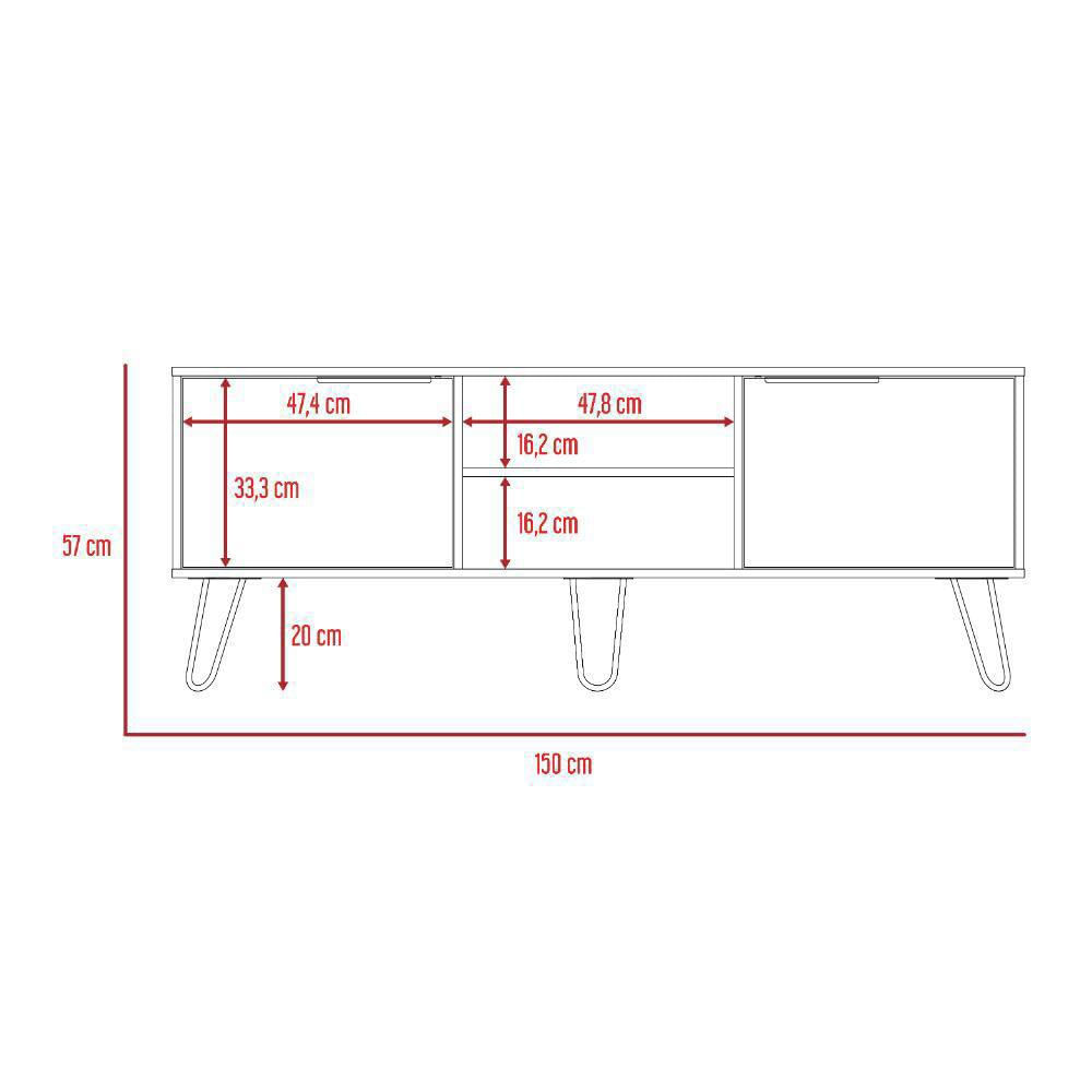 Mesa De Tv Ali, Café Claro Y Wengue, 65 Pulgadas 1 Entrepaño Y 2 Puertas Mai