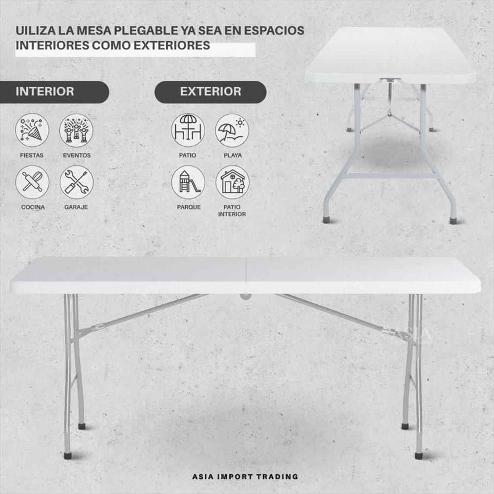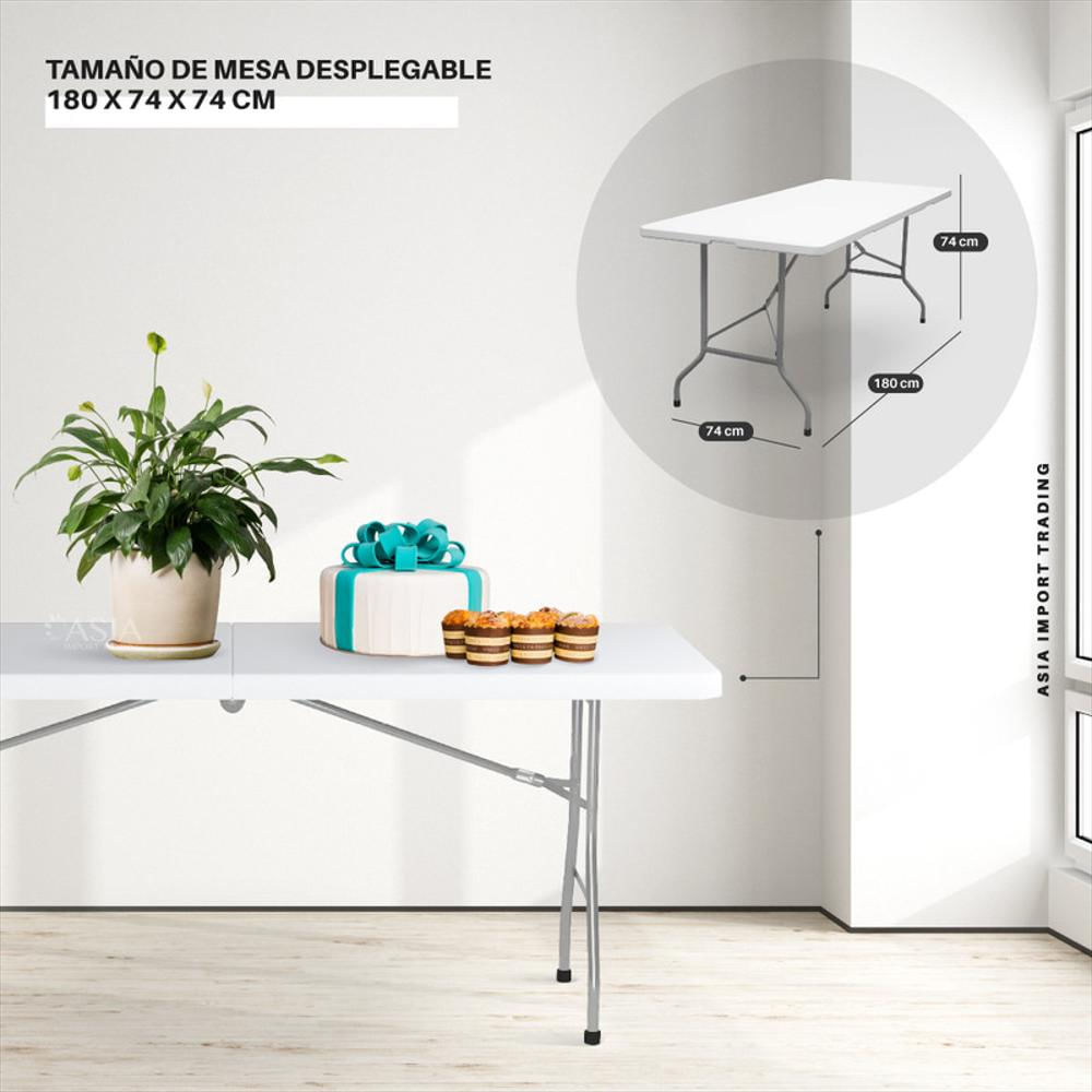Mesa Plegable Plastica 180X74cm Tipo Portafolio Blanca